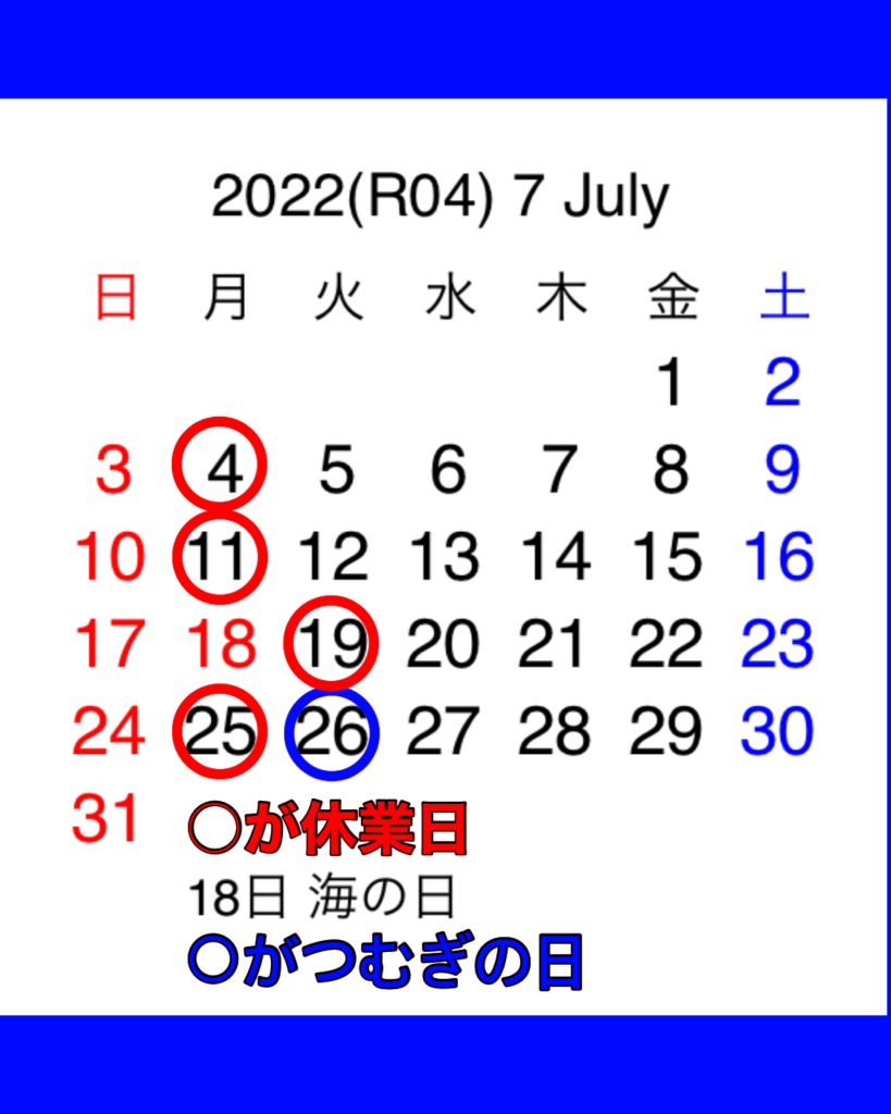 19日は振替としてお休み頂きますので、