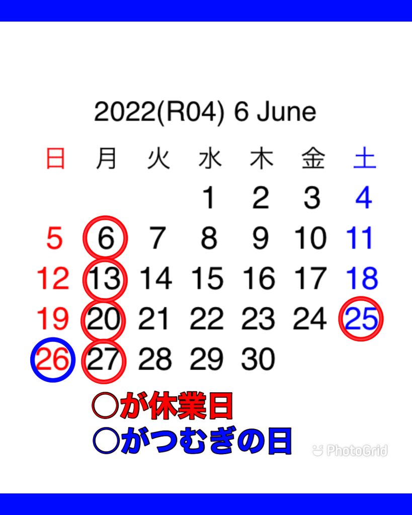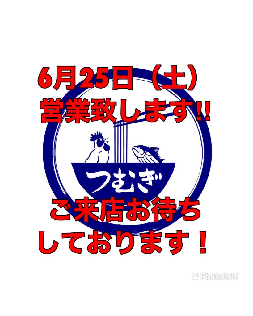 2022年6月予定表 26日の土曜日は所用のためお休み頂きますので、ご足労ないようによろしくお願い致します! 明日5月31日から6月5日までオープン1周年記念抽選会を行います! 26日つむぎの日は大盛無料! LINE会員