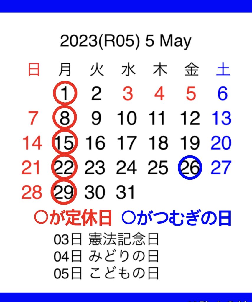 2023年4月予定表 いつもつむぎをご愛顧いただきまして、誠にありがとうございます😊 4月7日は所用の為お休み頂きますので、ご足労のないようにお願い致します。 26日はつむ(26)ぎの日で、当店のLINE会員にご登録して