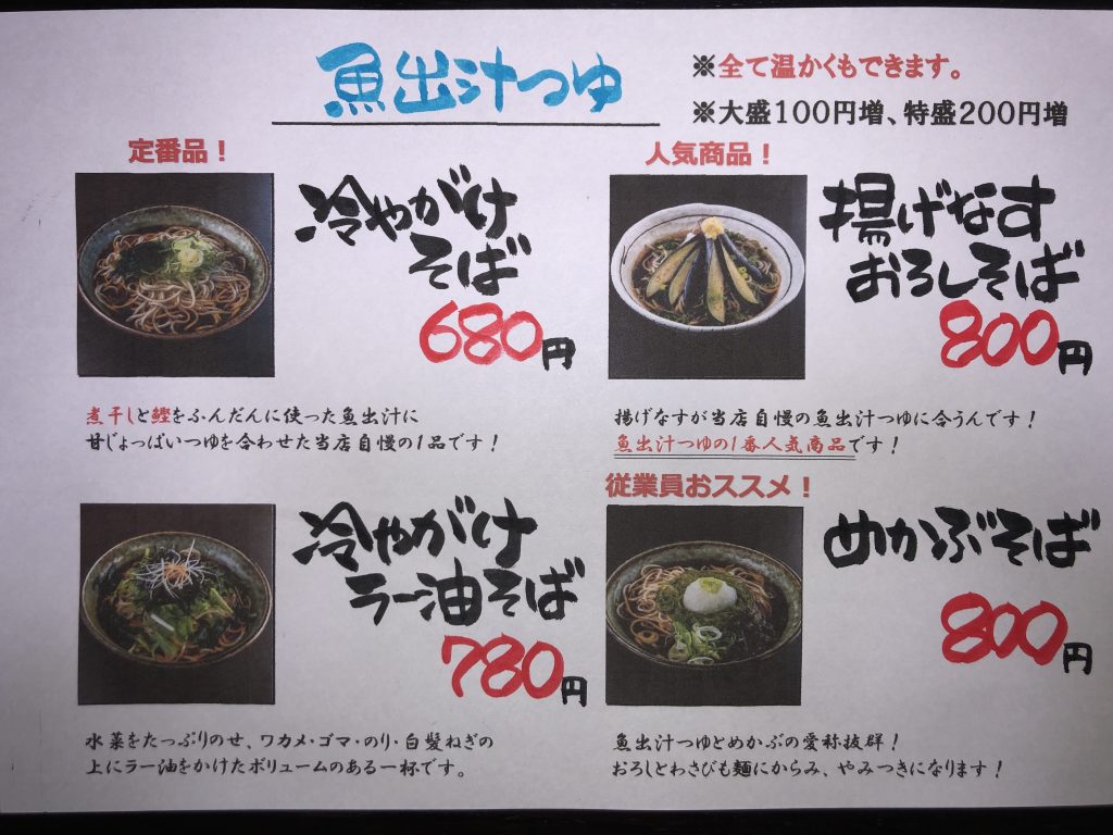 お客様が写真を見て商品がすぐわかるように 商品画像付きのメニューに改訂しました! また、期間限定で販売していた「めかぶそば」も 新たに定番メニューとして加わりましたので 是非これからもお楽しみください!